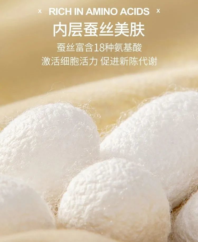 还更贴心的加入桑蚕丝成分,蚕丝是自然界中的天然纤维,素有“人体第二肌肤”的美誉。